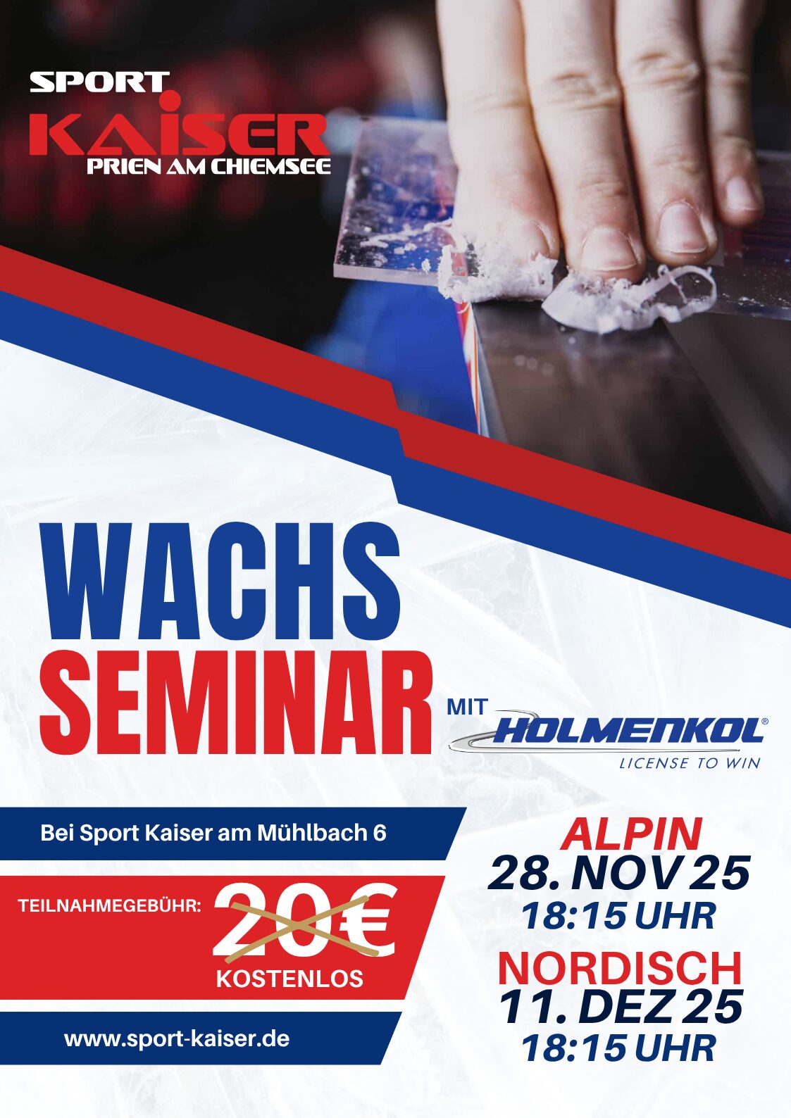Sport Kaiser GmbH, Am Mühlbach 6, 83209 Prien am Chiemsee Am Mühlbach 6, Prien, Bavaria, GermanySki-Service Opening bei Sport Kaiser Alles startklar für die Wintersaison 2025/26 Der Winter kann kommen – unser Ski-Service startet! Ab sofort bringen wir Ihre Ski, Snowboards, Tourenski und Langlaufski wieder in Topform. Egal, ob Kanten schleifen, Belag ausbessern oder professionelles Wachsen – unser Team sorgt dafür, dass Ihr Material perfekt vorbereitet in die Saison startet.