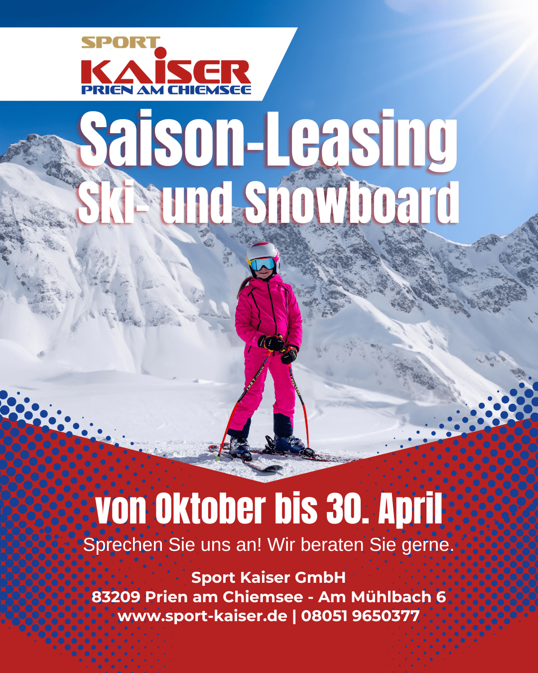 Sport Kaiser GmbH, Am Mühlbach 6, 83209 Prien am Chiemsee Am Mühlbach 6, Prien, Bayern, GermanySki-Service Opening bei Sport Kaiser Alles startklar für die Wintersaison 2025/26 Der Winter kann kommen – unser Ski-Service startet! Ab sofort bringen wir Ihre Ski, Snowboards, Tourenski und Langlaufski wieder in Topform. Egal, ob Kanten schleifen, Belag ausbessern oder professionelles Wachsen – unser Team sorgt dafür, dass Ihr Material perfekt vorbereitet in die Saison startet.